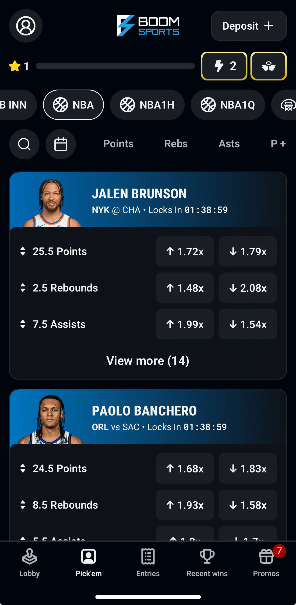 Typical offers include (but are not limited to) leaderboard contests, profit boosts, athlete discounts (where Boom adjusts an athlete’s projected stat total in a way that makes your pick much likelier to win), and second chance tokens.
