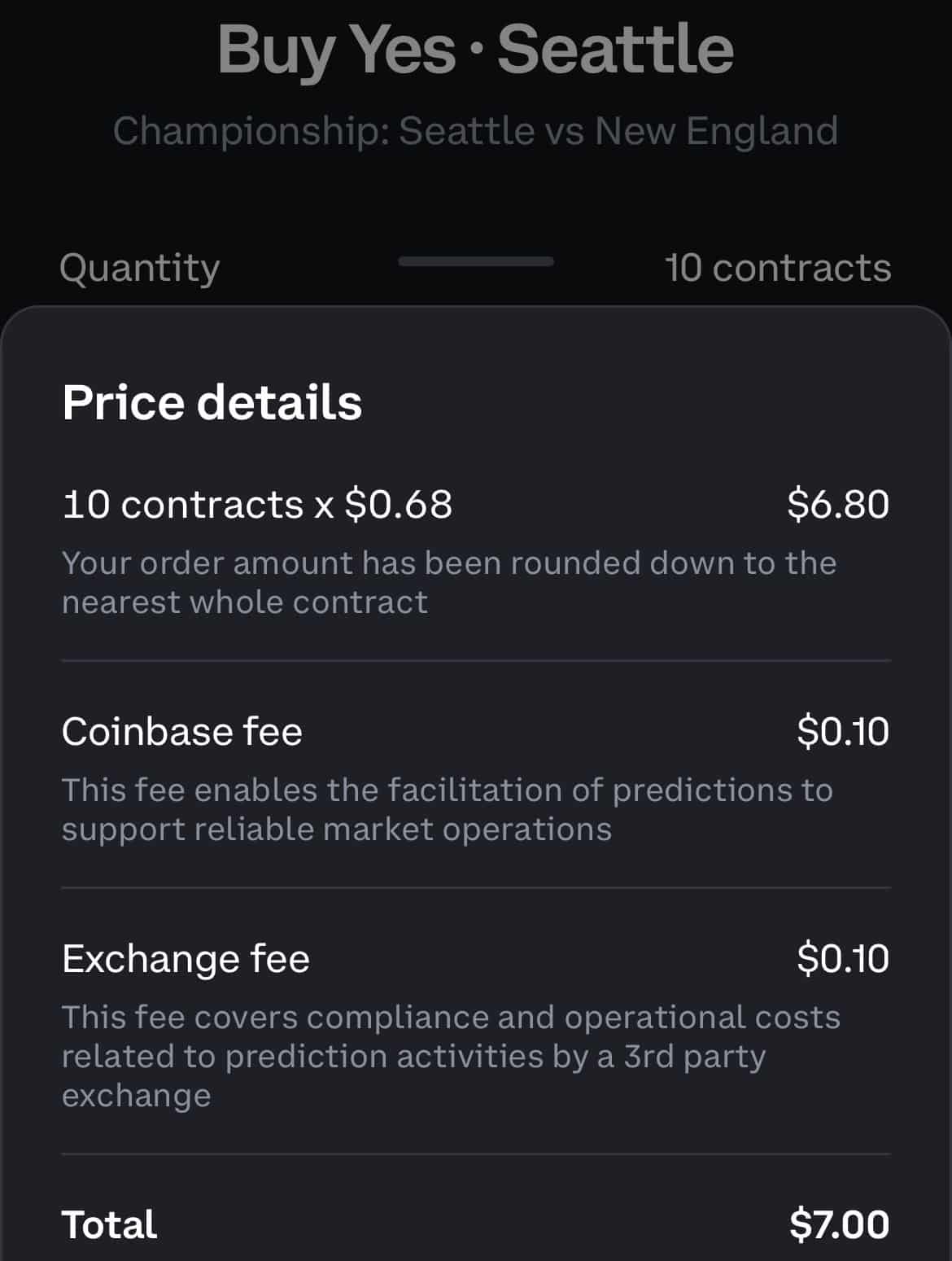 - If you buy 100 โYesโ contracts at 68ยข on โSeahawks to win,โ youโll spend $68. If they win, your contracts will settle at $1 each for a $100 payout. Net profit before fees: $32.