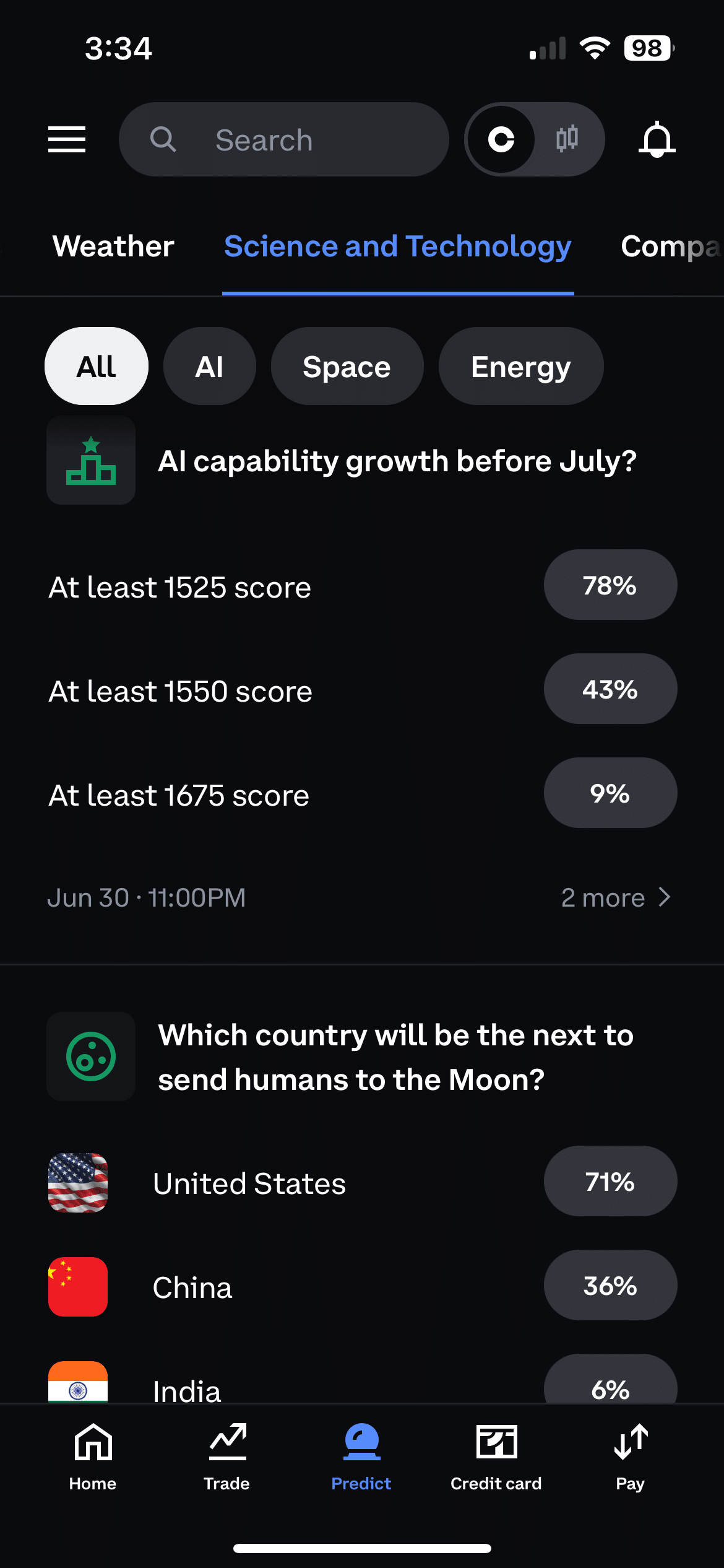 - Science and Technology (โWill OpenAI release its next model this month?โ โWill a major meteor strike Earth before 2030?โ)