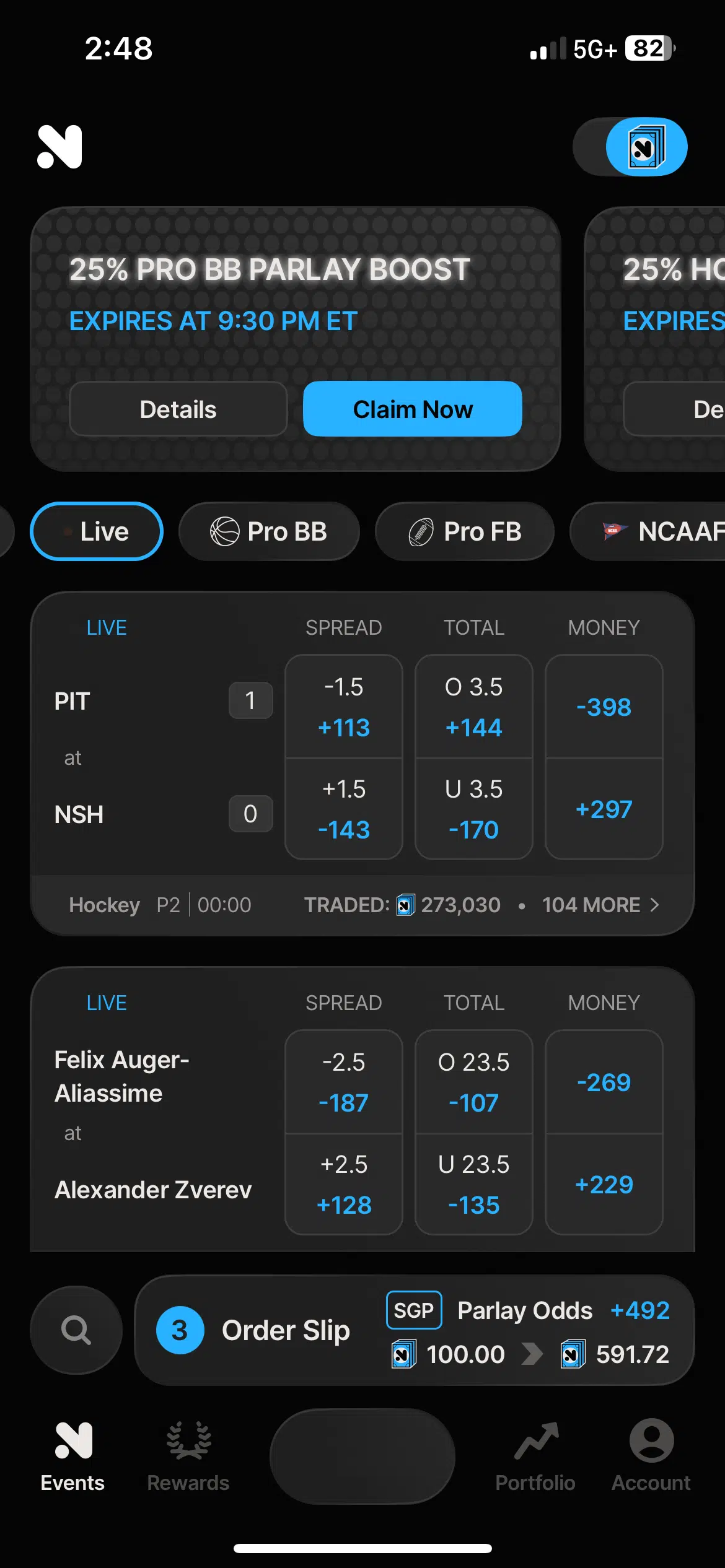 - An order interface toggle to switch between Novig Coins and Novig Cash when executing trades